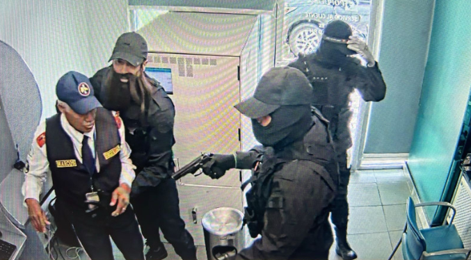 En el acto se presume la participación de cuatro individuos, tres que penetraron en la entidad bancaria y otro que esperó en el vehículo en que escaparon tras lograr su cometido 04/06/2024 Las cámaras de seguridad de la entidad bancaria captaron el momento en que los antisociales llegan al lugar y apuntan con un…